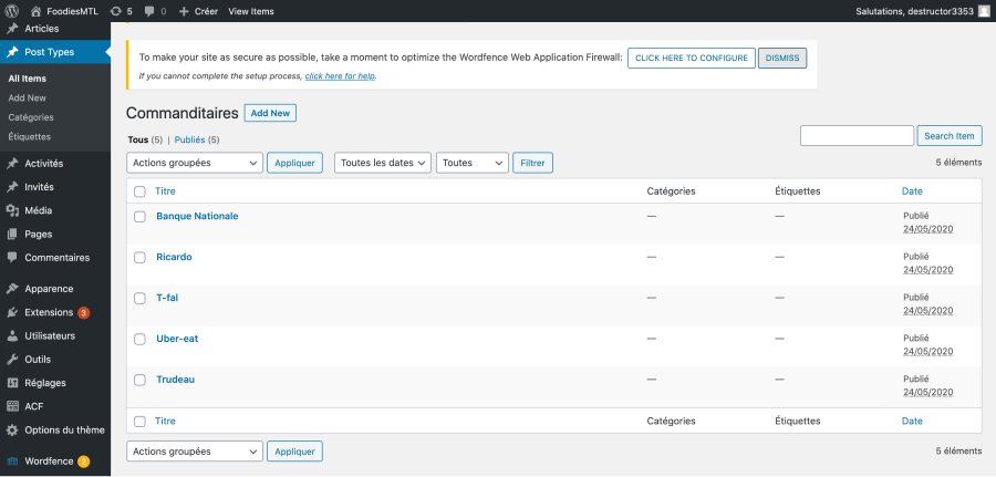 Il ne me restai plus qu’à entrer les ACF sur les pages aux emplacements prévus des contenus ajoutés et à envoyer sur le serveur pour avoir terminé la création de mon thème.