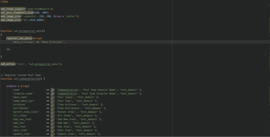 Puis j’ai créé les CPT préalablement sélectionnés et intégrés leur contenu sur les pages prévues. À l’Aide de Phpstorm j’ai intégré les contenus des CPT dans les pages prévues des templates faits précédement.
