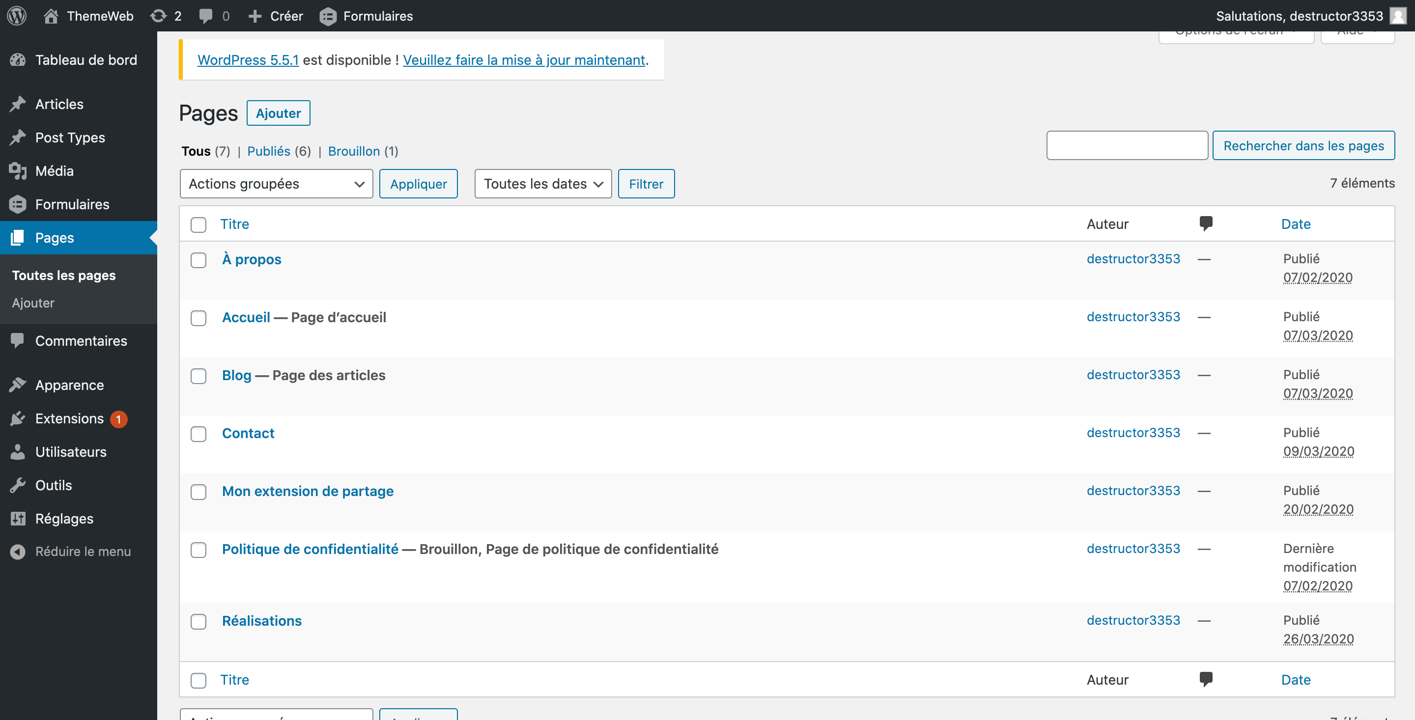 Puis j'ai intégré les contenus dans les gabarits et exporté ceux-ci sur wordpress