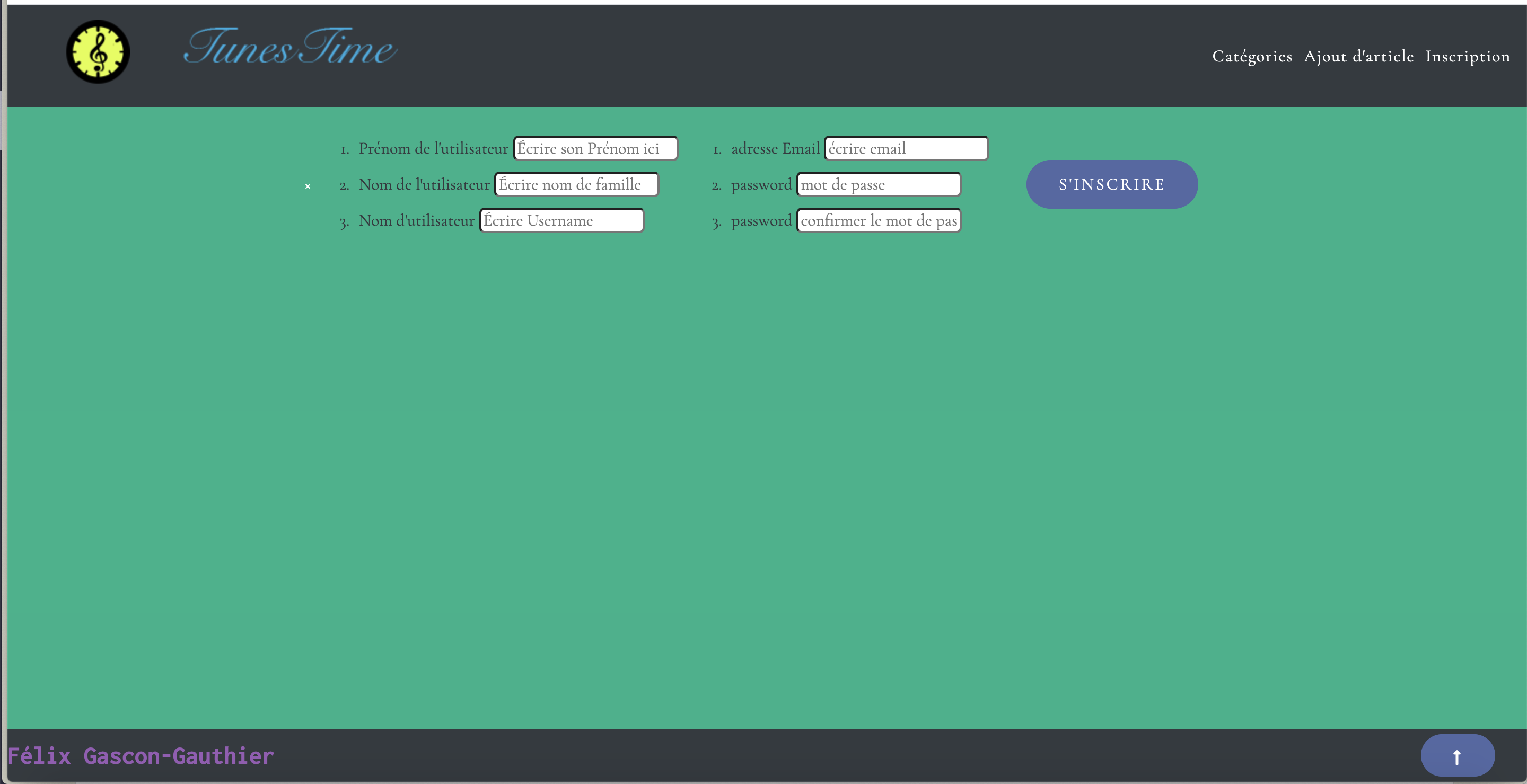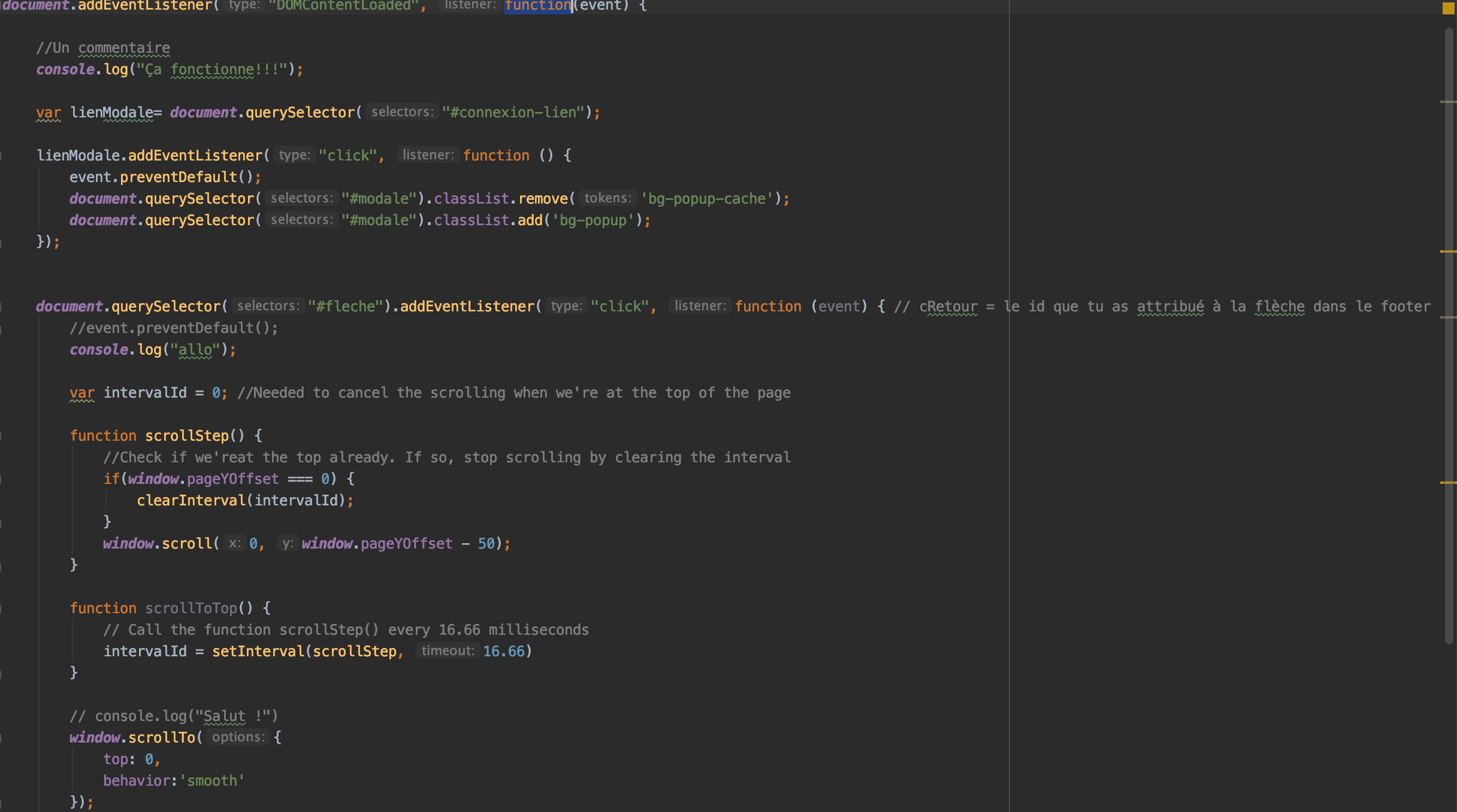 Et enfin il ne me restait plus qu'à réaliser les codes Javascript pour un scrollToTop et pour faire une fenêtre modale pour le formulaire de connection
